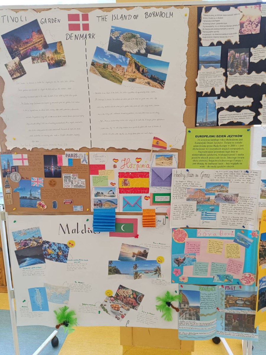Jak co roku w naszej szkole obchodziliśmy Europejski Dzień Języków Obcych. To wspaniała okazja, aby docenić bogactwo kulturowe Europy. Stało się to już naszą szkolną tradycją, że uczniowie z klas 4-8 przygotowują plakaty na temat wybranych przez siebie krajów. Wszystkie prace zostały zaprezentowane na szkolnych korytarzach, gdzie mogliśmy podziwiać kreatywność i pomysłowość naszych uczniów. Mogliśmy się również dowiedzieć wielu interesujących rzeczy na temat krajów z całego świata. Natomiast uczniowie klas 1-3 ten dzień spędzili na grach i zabawach językowych. Poznali również powitania z różnych stron świata. Dzień ten podkreśla znaczenie wielojęzyczności, wspiera rozwój kulturalny oraz uświadamia bogactwo językowe.