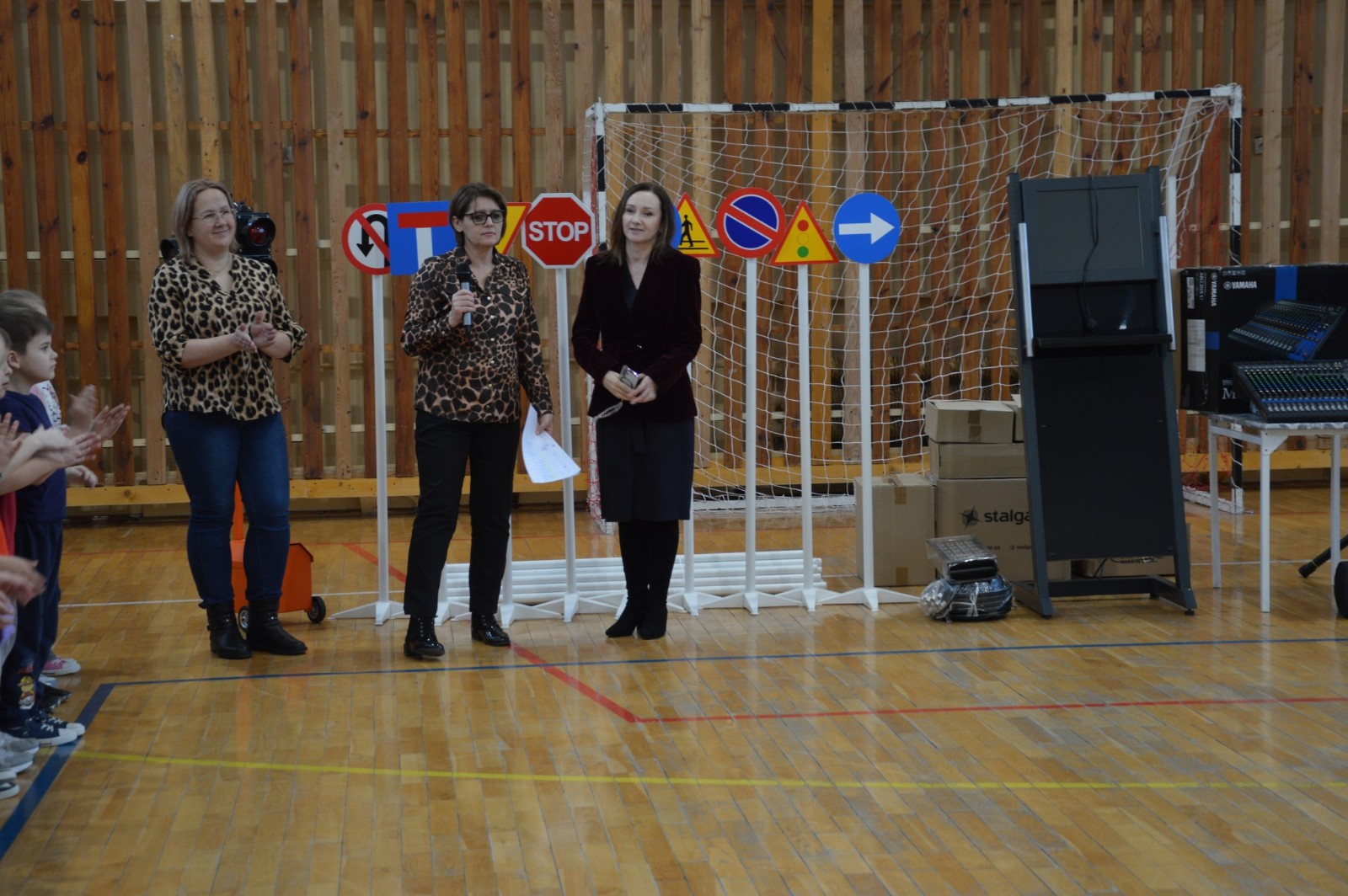 Dzisiaj Wicewójt Gminy Górno, Pani Anna Zapała-Śledź, w imieniu Wójta Gminy Górno, Pana Przemysława Łysaka, przekazała Zespołowi Szkolno-Przedszkolnemu w Krajnie nowy sprzęt: zestaw nagłośnienia, infokiosk wewnętrzny oraz zestaw miasteczka ruchu drogowego. Pani Dyrektor Małgorzata Pajdała serdecznie podziękowała za wsparcie, które zostanie wykorzystane w przygotowaniach do corocznego konkursu Bezpieczeństwa Ruchu Drogowego.