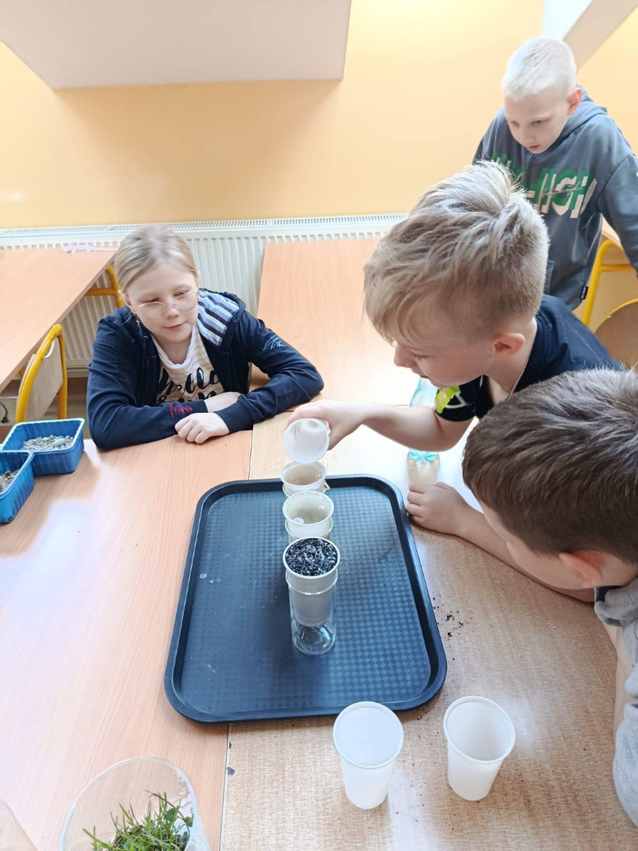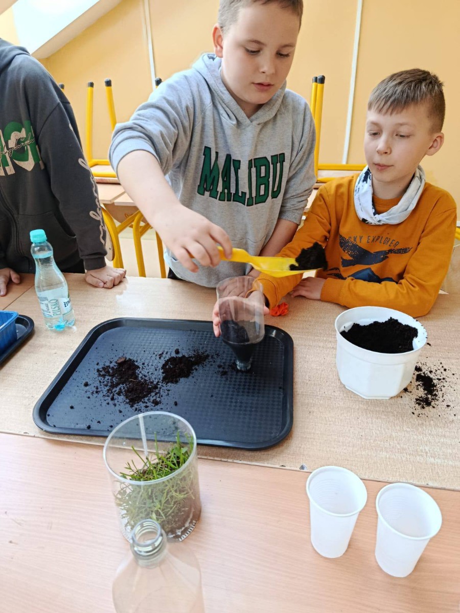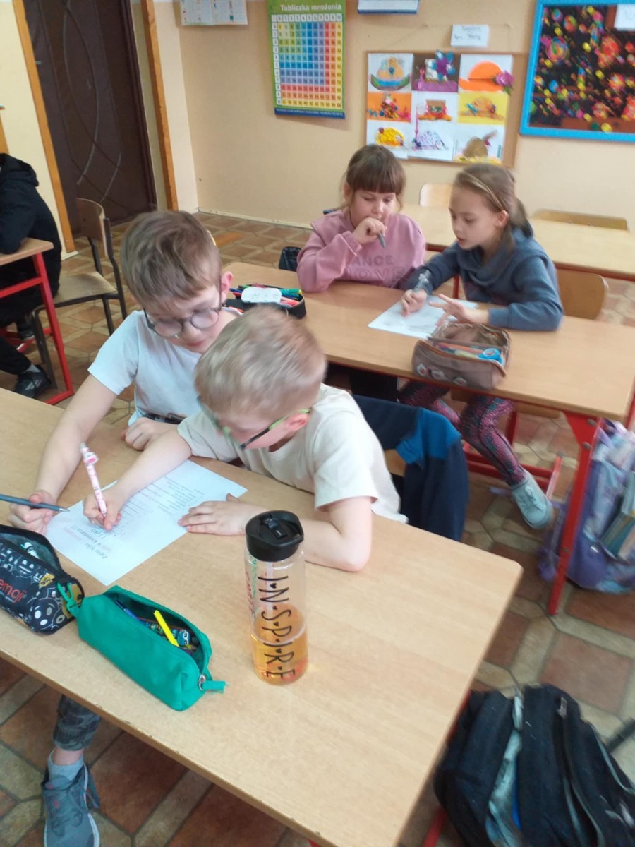 Nasi uczniowie biorący udział w zajęciach o tematyce proekologicznej i antydyskryminacyjnej w ramach realizacji projektu pn. „Rozwój wiedzy i umiejętności uczniów w Szkołach Podstawowych w Gminie Górno” w ramach programu regionalnego Fundusze Europejskie dla Świętokrzyskiego 2021-2027 współfinansowanego ze środków Europejskiego Funduszu Społecznego Plus.