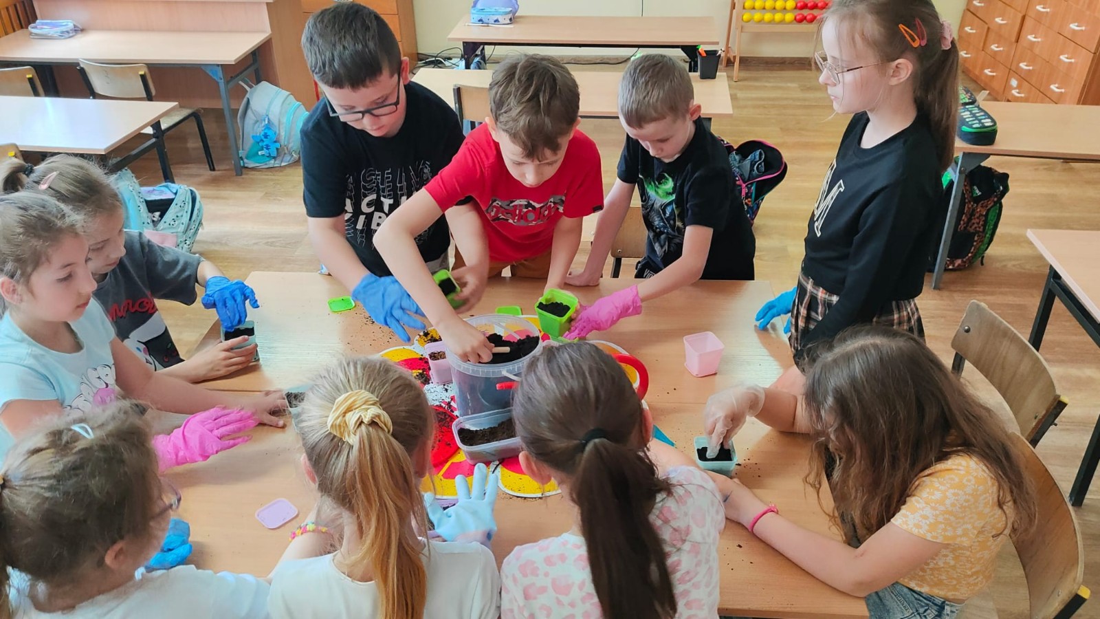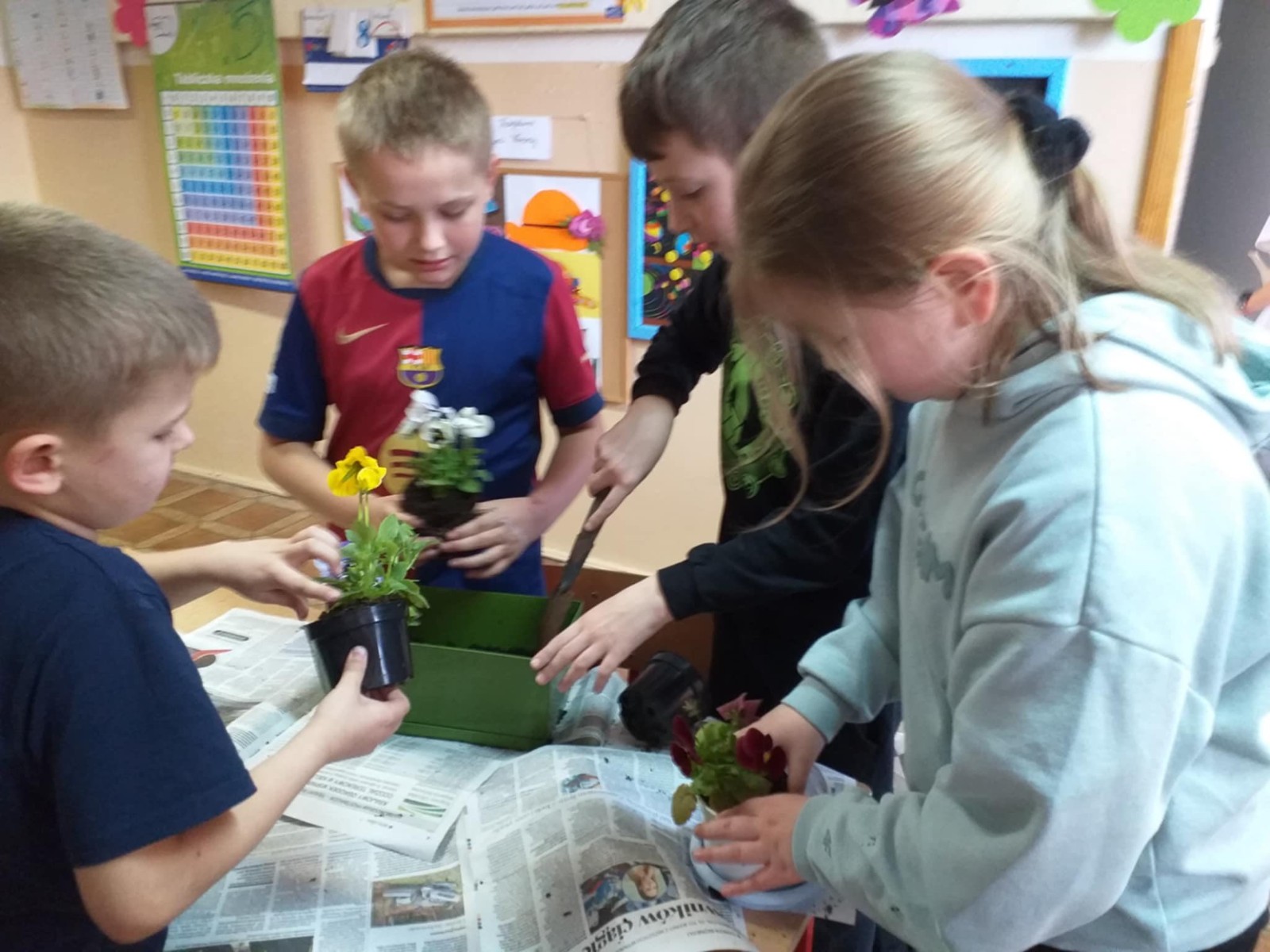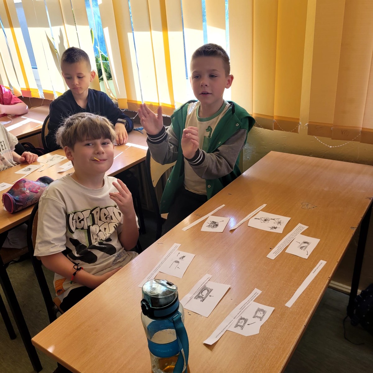 Nasi uczniowie biorący udział w zajęciach o tematyce proekologicznej i antydyskryminacyjnej w ramach realizacji projektu pn. „Rozwój wiedzy i umiejętności uczniów w Szkołach Podstawowych w Gminie Górno” w ramach programu regionalnego Fundusze Europejskie dla Świętokrzyskiego 2021-2027 współfinansowanego ze środków Europejskiego Funduszu Społecznego Plus.